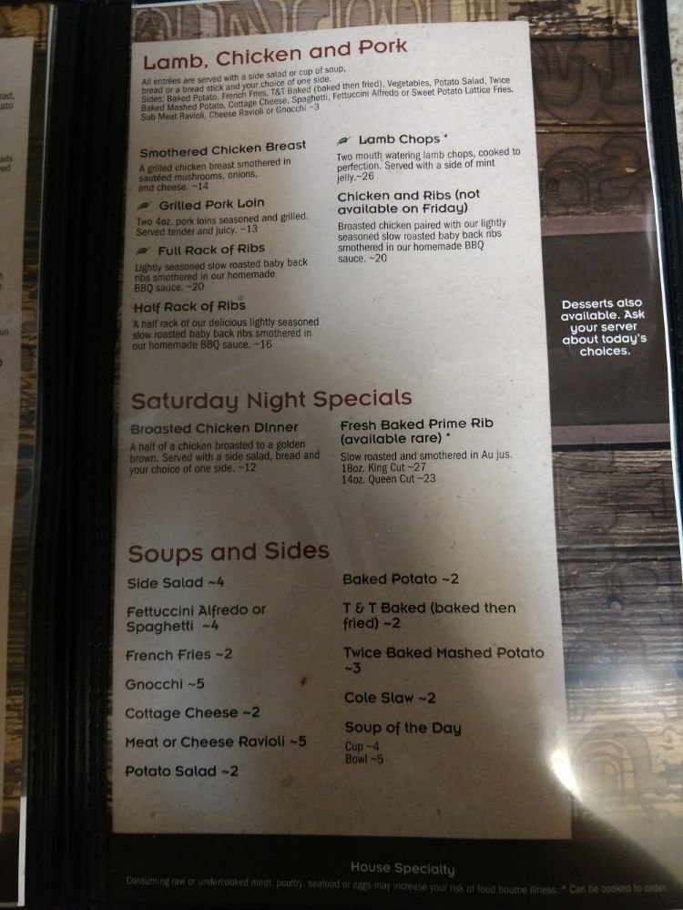 Welcome to T&T Steakhouse, an exquisite blend of Italian, seafood, and classic steakhouse flavors nestled in Niagara, WI. This warm, women-owned establishment boasts a diverse menu filled with premium cuts of meat, delicious seafood options, and delightful Italian dishes. As a patron, you can indulge in their exceptional prime rib or savor the perfectly cooked steak, highly praised by satisfied customers.